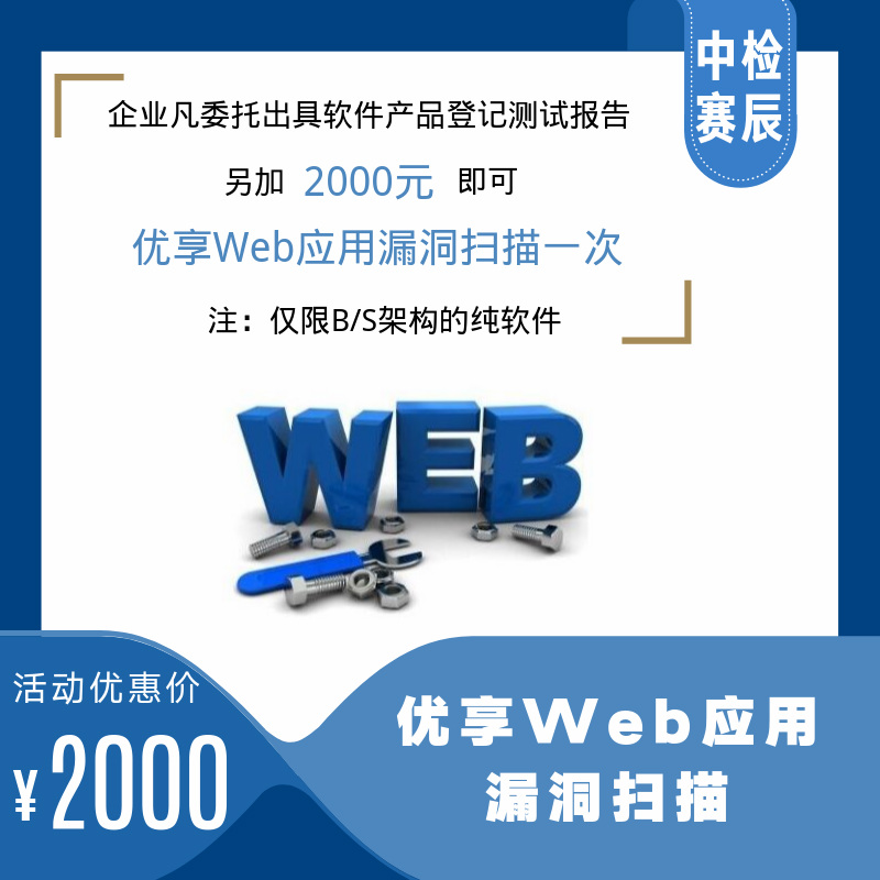 為回饋新老客戶,即日起,企業(yè)凡通過我公司委托出具軟件產(chǎn)品登記測試報告時,+2000元即可享受該軟件Web應(yīng)用漏洞掃描,及出具問題報告(市場參考價為8000元起)。