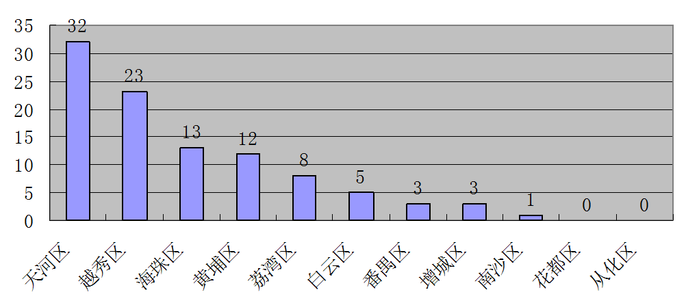今年的廣州企業100強中,營業收入超千億的特大型企業有6家,其中海珠1家、黃埔2家、荔灣1家、天河2家;營收500-1000億的企業8家,其中海珠區1家、荔灣區1家、天河區4家、越秀區2家。2019廣州企業100強按分布區域看,白云區5家、番禺區3家、海珠區13家、黃埔區12家、荔灣區8家、南沙區1家、天河區32家、越秀區23家、增城區3家,花都和從化暫無企業入榜。