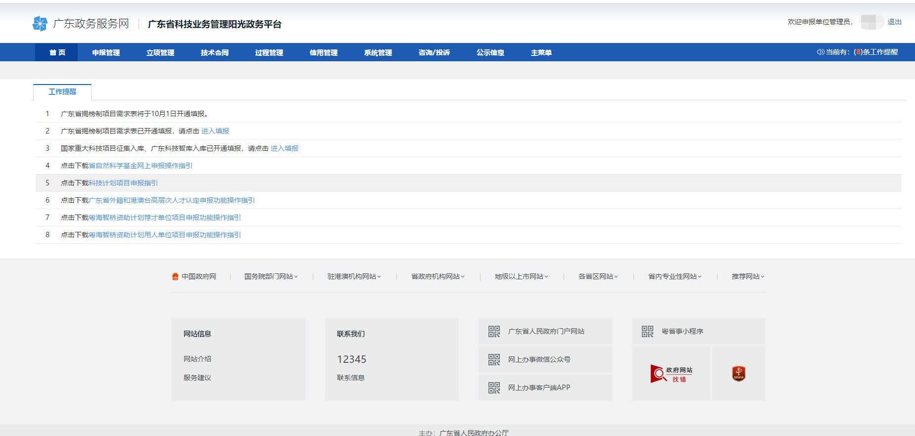 打開“廣東省科技業務管理陽光政務平臺”網站:http://pro.gdstc.gov.cn/egrantweb/