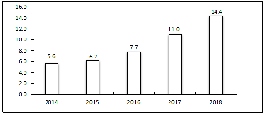 圖6 2014年-2018年我國企業平均軟件著作權數量(個)
