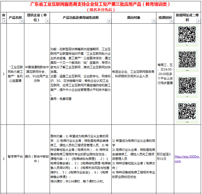 附件:廣東省工業(yè)互聯(lián)網(wǎng)服務商支持企業(yè)復工復產(chǎn)第三批應用產(chǎn)品(教育培訓類).xls